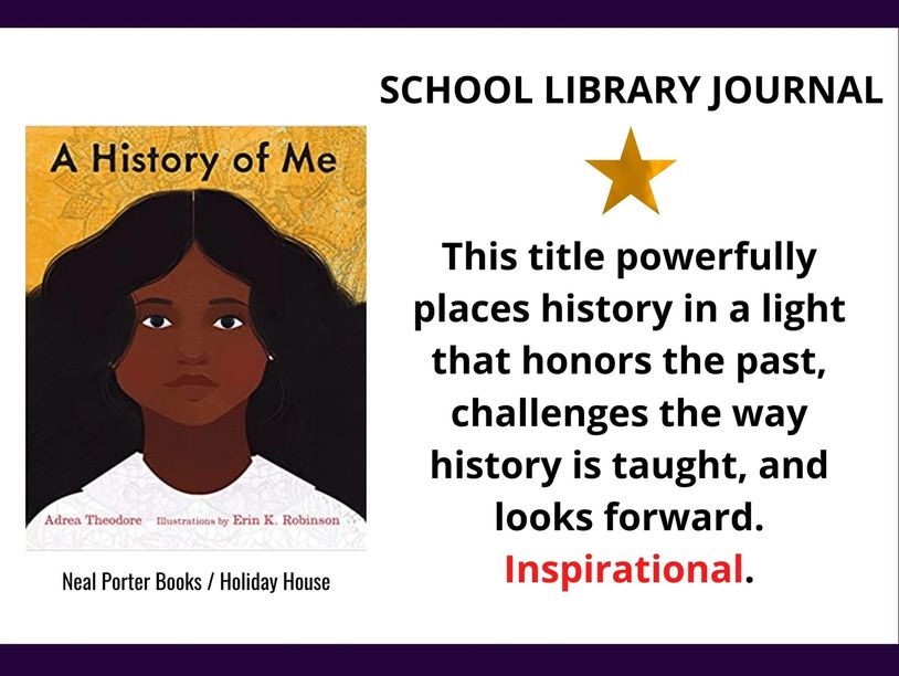 STARRED - Theodore, Adrea. A History of Me. illus. by Erin Robinson. 32p. Holiday House/Neal Porter. Jan. 2022. Tr $18.99. ISBN 9780823442577.